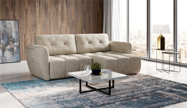 Мягкий диван повышенной комфортности, на котором приятно проводить время. Классический дизайн, округлые мягкие формы, утопающая посадка - все это делает его незаменимым для отдыха. Украшением дивана является декоративная прострочка и стяжки на спинке, подлокотниках и посадочном месте, которая благодаря своим свойствам повышает прочность и износоустойчивость обивки. Две большие подушки регулируют удобство посадки, после сидения моментально восстанавливают первоначальную форму. Механизм трансформации тик-так и мягкие элементы превращают диван в полноценную кровать. Большой бельевой короб для хранения вещей – приятное дополнение к дивану. Универсальный угол - переставляется на левую или правую сторону основной секции, удобно при частых перестановках.